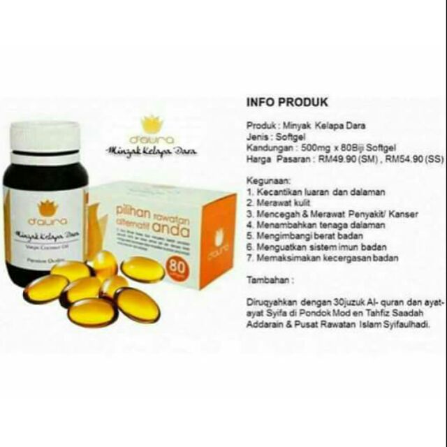 D Aura Kapsul Softgel Minyak Kelapa Dara Shopee Malaysia